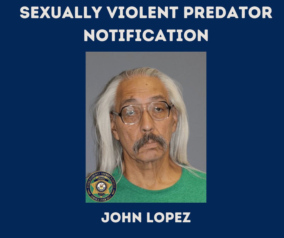 Pueblo, CO: The Pueblo County Sheriff’s Office has been notified by the Colorado Bureau of Investigation Sex Offender Registration Unit that John Lopez, 62, who is deemed a sexually violent predator, is residing in the Lombard Village neighborhood in East Pueblo County.